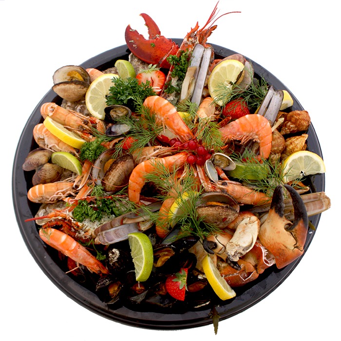 Een werkelijke topper is onze zeevruchtenschotel. Een heuse lekkernij voor iedere feestelijke gelegenheid. De schotel is steeds voorzien van o.a. Noordzeekrab (of krabbenpoten), ongepelde garnalen, koningsgarnalen, wulken, kreukels, oesters, assortiment schelpjes (palourdes, mosselen, kokkels, scheermessen, clams, amandes,…).