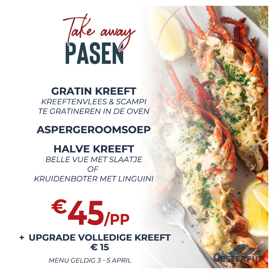 Take-away menu te verkrijgen tijdens het Paasweekend van vrijdag 3 tot zondag 5 april