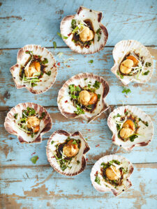 Levende of verse schaaldieren zoals kreeft, krab, langoustines. Minstens 12 uur op voorhand te bestellen.